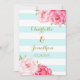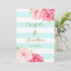 Blue Stripes Pink Flowers Wedding Invitations