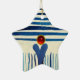 BLUE STRIPES & RED RUBY STAR CERAMIC TREE DECORATION