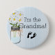 This adorable badge or pin back button tells all your baby shower guests "I'm the Grandma". A blue and white striped background, with a vintage mason jar filled with pretty white daisy flowers. Black baby footprints. Personalise for other baby shower guests. To see coordinating products - Please visit my store "The Hungarican Princess" at www.zazzle.com/hungaricanprincess*. Look in my "Blue and White Mason Jar Baby Shower Collection". Congratulations.