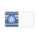 A modern design featuring blue stripes accented by a circle with an initial. Add your monogram. Customise as desired.
