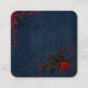 Blue Suede w/Black & Red Roses, Red Scroll Design Square Business Card