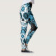 Dia de los Muertos sugar skull in colourful hues of blue surrounded by flowers.