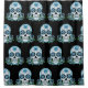Dia de los Muertos sugar skull in hues of blue with beautiful flowers and hearts.