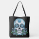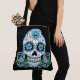 Dia de los Muertos (Day of the Dead) sugar skull with roses in hues of blue.