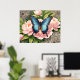 Blue Swallowtail Butterfly Floral Botanical Art Poster