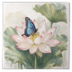 Blue Swallowtail Butterfly With Lotus Flower Art Tile