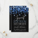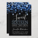Blue & Black Sweet 16 Birthday Sparkly String Lights "Save the Date" announcement template with party address and RSVP details.