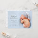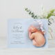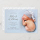 Elegantly sweet birth announcements feature your favourite newborn photo in full bleed, with your baby's name, birth stats and your names in grey (or any colour you want) calligraphy script centred at the bottom. On the back, change the background colour to any colour that suits your photo under the white polka dots or remove the dots.