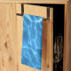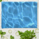 Photo of light playing on the bottom of a swimming pool digitally tinted bright blue. Add personalised text or a monogram. Create your own sporty kitchen towel.