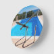 Blue swimming pool with steps at sea round clock
