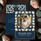 Express your gratitude with mediaeval charm! These wedding thank you cards feature your photo inside a shield-shaped frame, surrounded by intricate cream florals against a blue background. A unique and elegant way to say 'thank you' to your loved ones!