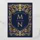 Invite your wedding guests with this Royal Sword & Shield Mediaeval Fantasy Monogram design. This design is perfect for couples seeking a regal yet modern-day mediaeval fantasy aesthetic. Personalise the text, font, and background colour to suit your design preferences. Matching Items in our shop for a complete party theme. Please Note that the gold on the back of the invitation is NOT real foil and is printed in flat colours.