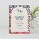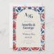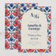 This colourful blue and red talavera tile inspired Mexican wedding invitation is the perfect way to invite loved ones to celebrate your Mexico themed or destination wedding! Elegant wedding invitation with floral images and arch as well as monogram letters for the new married couple!