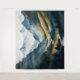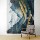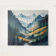This captivating horizontal tapestry presents a breathtaking mountain scene, masterfully rendered in soothing shades of blue and tan that evoke a sense of serenity and awe. At the heart of the composition, a crystal-clear stream meanders gracefully down the mountain, its waters reflecting the sky's azure hue, creating a harmonious blend of colours that exudes tranquillity. The mountains, depicted in varying shades of tan, rise majestically against the backdrop, their peaks touching the sky, suggesting both their grandeur and the timeless beauty of nature.