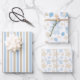 BLUE & TAN TEDDY BEARS STRIPES STARS WRAPPING PAPER SHEET