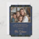 This blue tartan Christmas card has a cute preppy bear holding a gift with hand lettering that says Merry Christmas. The back features your favorite photo with coordinating blue tartan background. You can personalize with a greeting and a name.