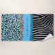 These awesome custom beach is awesome for making sure nothing gets lost in the college laundry machine because it's customised with your name on it! Great for girls who love blue or boys that want a little bling. Featuring a teal and black design with teal blue glitter and blue leopard print.