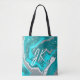 Blue, Teal and Turquoise Marble Fluid Art Monogram Tote Bag
