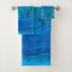 Blue Teal Aquamarine Marble Acrylic Abstraction Bath Towel Set