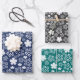Blue, Teal, Black & White Star & Snowflake Pattern Wrapping Paper Sheet