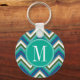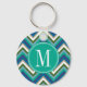Blue & Teal Chevron Pattern with Monogram Key Ring