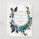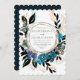 Elegant watercolour blue and teal floral bouquet with dramatic botanicals and deep navy blue and black greenery. This romantic design includes dusty blue roses, faux gold meadow grass for a summer or winter rustic garden theme. Bountiful bouquet artwork in shades of dusty blue, teal, navy with elements of gold.