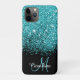 Blue, teal glitter, personalised with your name and monogram iPhone 11 Pro Case. Mobile phone case.