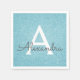 Teal Aqua Blue Faux Glitter and Sparkle Elegant Monogram Birthday Party Napkins. This Birthday Party, Bridal Shower, Wedding, Baby Shower Napkin can be customised to include your initial and first name.