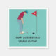 Light blue golfer, wearing a cap, red shirt and blue pants, putting a golf ball into a hole design napkins. Customise the text.