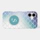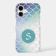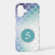 This gorgeous phone case features your monogram in silver white on a teal circle banner lined in a glittery frame. The banner is placed on a pretty gradient background that is covered with glittery fish scales. Unique with colour that almost glows! *Please note - the image is printed and contains no actual glitter.