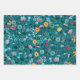 Blue Teal Green Red Pink Yellow Floral Pattern Wrapping Paper Sheet