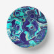 Blue Teal Ocean Swirls Fluid Art Paper Plate