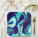 Blue Teal Ocean Swirls Marble Fluid Art Paper Plate