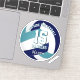 This team colours volleyball sticker for girls or boys features the realistic image of a volleyball that has navy blue, teal and white panels - customise the player's name, jersey number, team name and mascot name - by katz_d_zynes