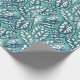 This is a pattern of blue, turquoise and white tropical leaves on a light teal background.