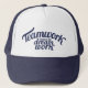 Typographical slogan hat in blue and white. Reads: Teamwork makes the dream work. Perfect to inspire teamwork or for team building events. Uniquely designed by Sarah Trett for www.mylittleeden.com