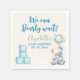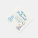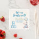 Add a special touch to your baby shower table with these custom napkins. Designed with a sweet teddy bear, bottle, and balloons in blue and white for the perfect boy baby shower theme.