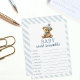 Watercolor blue teddy bear baby word scramble baby shower cards, games. Boy baby shower.
