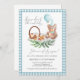 Blue Teddy Bear Balloon Picnic 1st Birthday Invitation