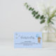 A bring a book request, ticket insert for a baby shower. A light blue background. Decorated with a teddy bear boy holding a blue balloon.