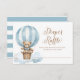 Blue Teddy Bear Boy Baby Shower Diaper Raffle Enclosure Card features an adorable watercolor illustration of a teddy bear in a hot air balloon against soft clouds.
