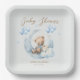Blue Teddy Bear Stars Baby Shower Paper Plate