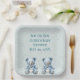 Each plate features a cute blue teddy bear, adding a whimsical touch to your baby shower decor. Customisable text box