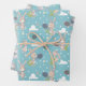 Super cute blue tennis bunny wrapping paper sheets for tennis player. Three styles. The pattern with cute tennis bunnies also available as fabric and many everyday and tennis themed party items.