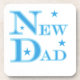 New Dad keepsake boxes, tiles, notebooks, ornaments, magnets, cards, tote bags, mugs, and other new dad clothing and gift items with a blue text and star design.