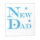 New Dad keepsake boxes, tiles, notebooks, ornaments, magnets, cards, tote bags, mugs, and other new dad clothing and gift items with a blue text and star design.