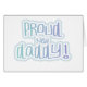Shades of blue text Proud New Daddy T-shirts, mugs, tote bags, cards, magnets, and other new daddy gear!