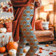 Blue Thanksgiving Turkey Holiday Pattern Leggings