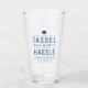 Modern "the tassel was worth the hassle" typography design in blue and white, great personalised gifts and favours for graduation party.