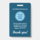 A relaxing ocean blue background and easy-to-read fonts add importance and ease of readability to this therapy animal name photo ID badge. Customise with organisation's name, team name, handler's name, therapy animal's name, aqualification level, expiry date, and photo.